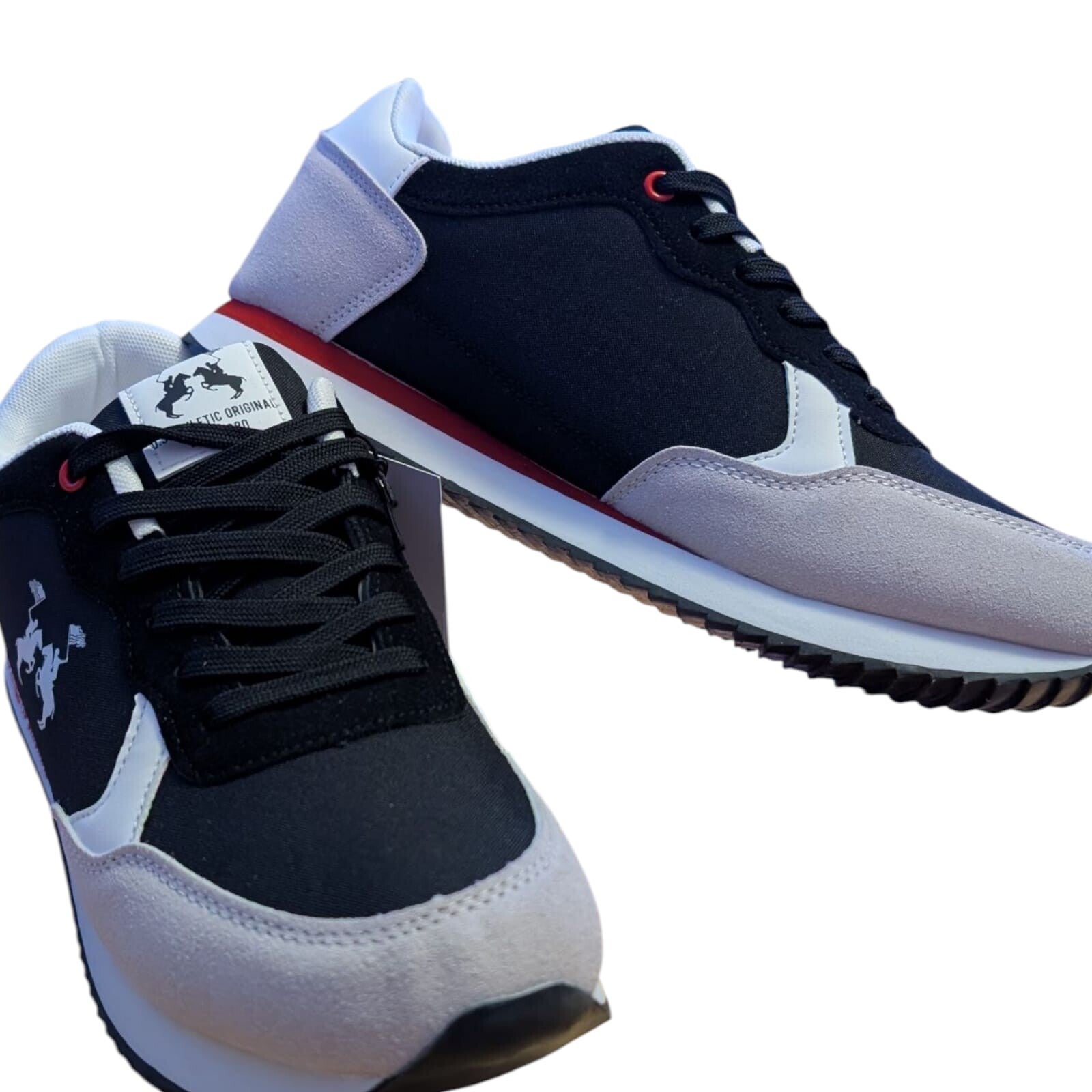 U.S ATHLETIC Speed Run Herren Sport-Sneaker in Canvas-Wildlederoptik Schnür-Schuhe Schwarz/Grau/Weiß